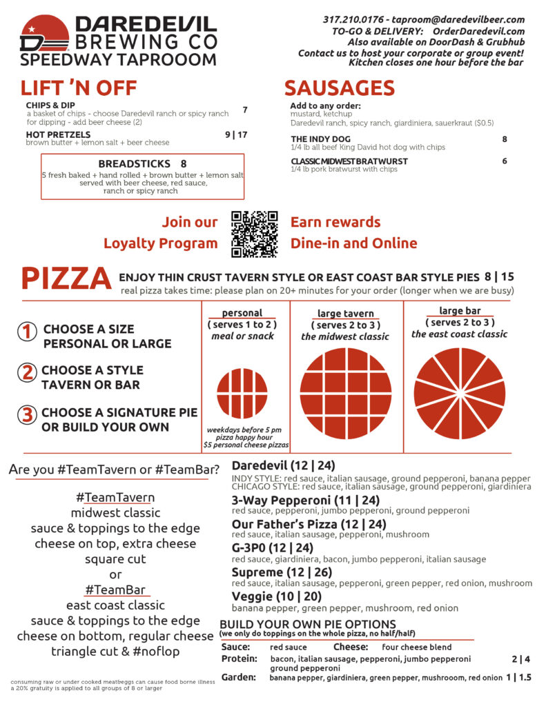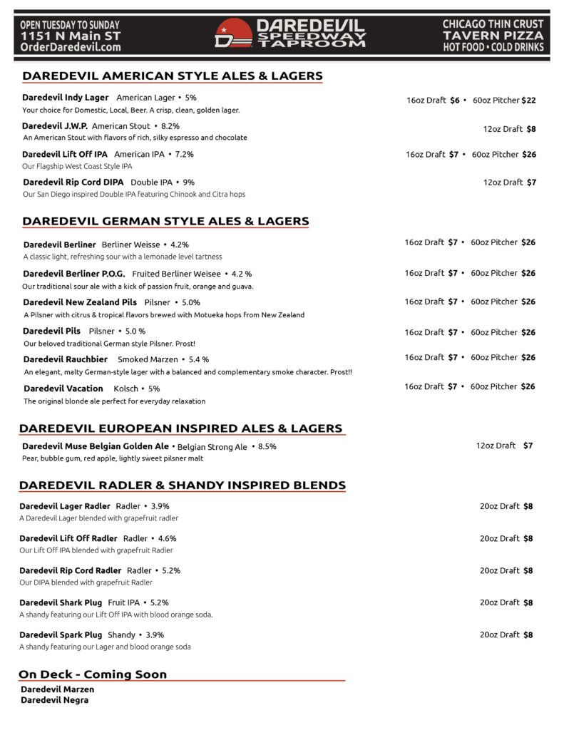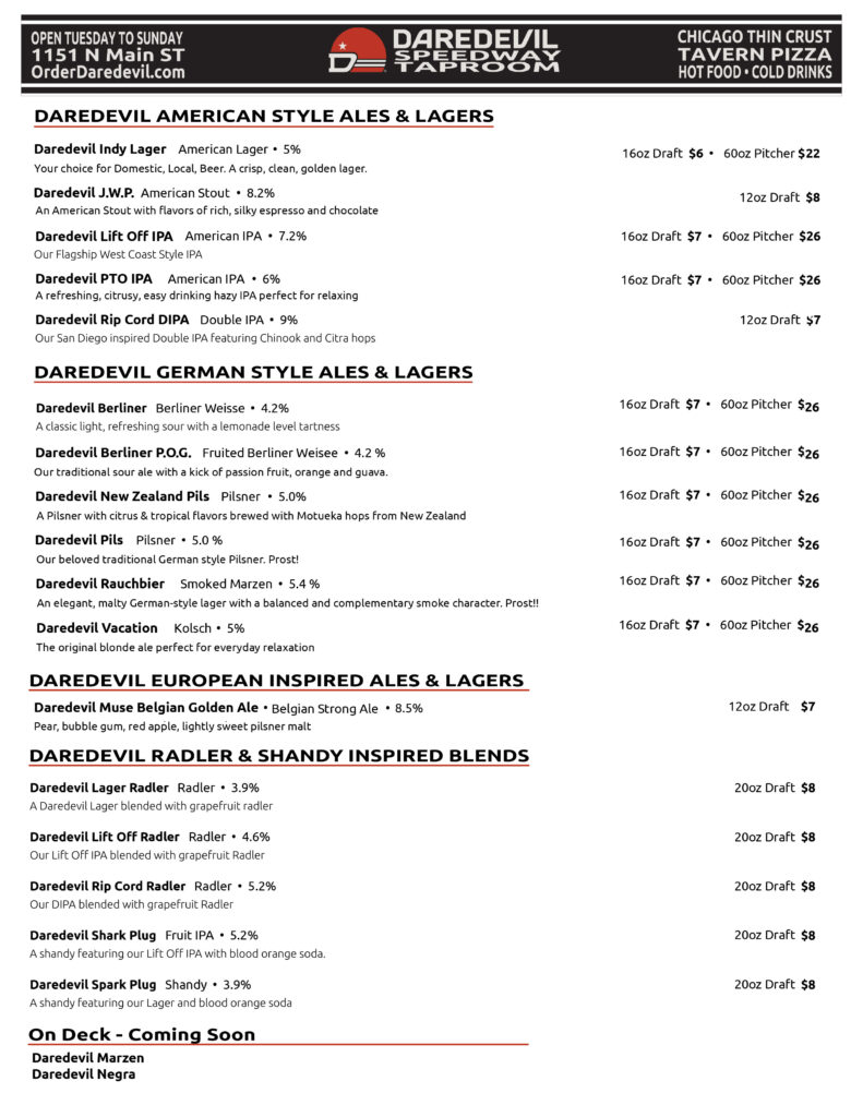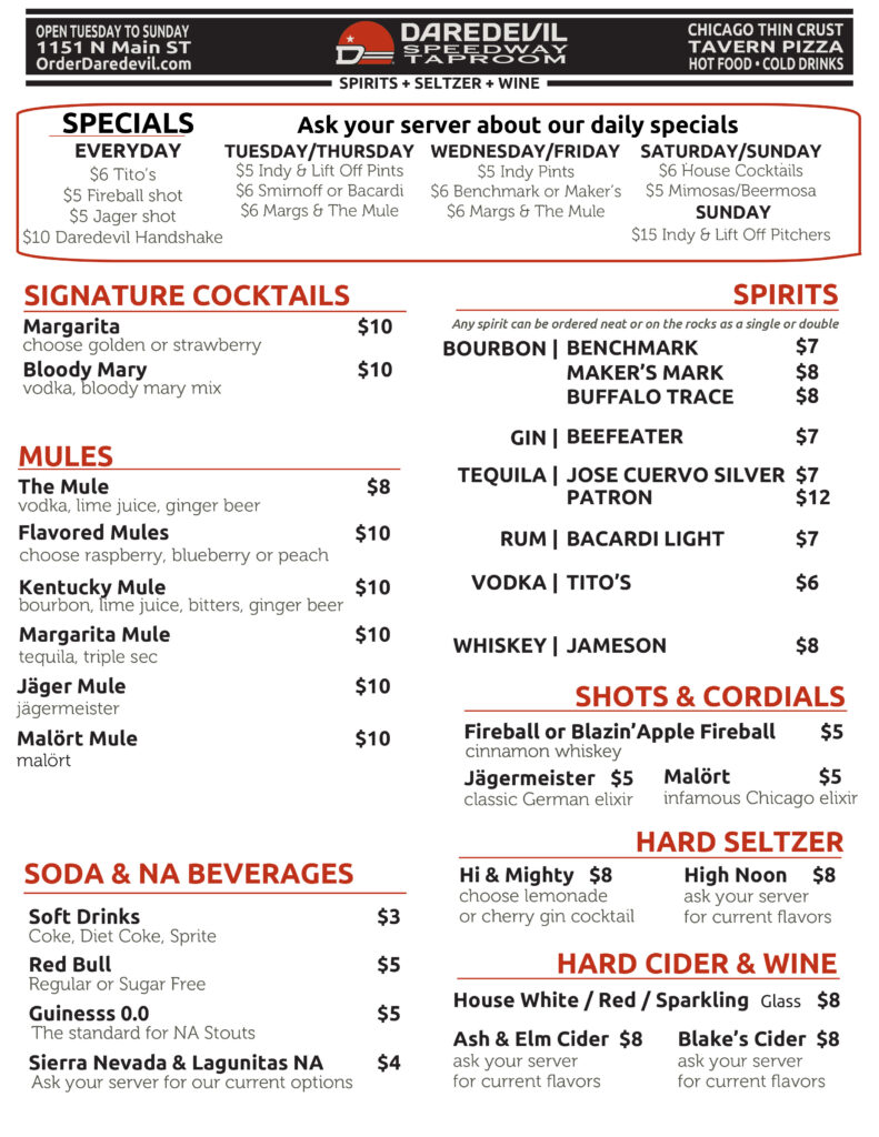 Place to-go orders for the Speedway Taproom at OrderDaredevil.com