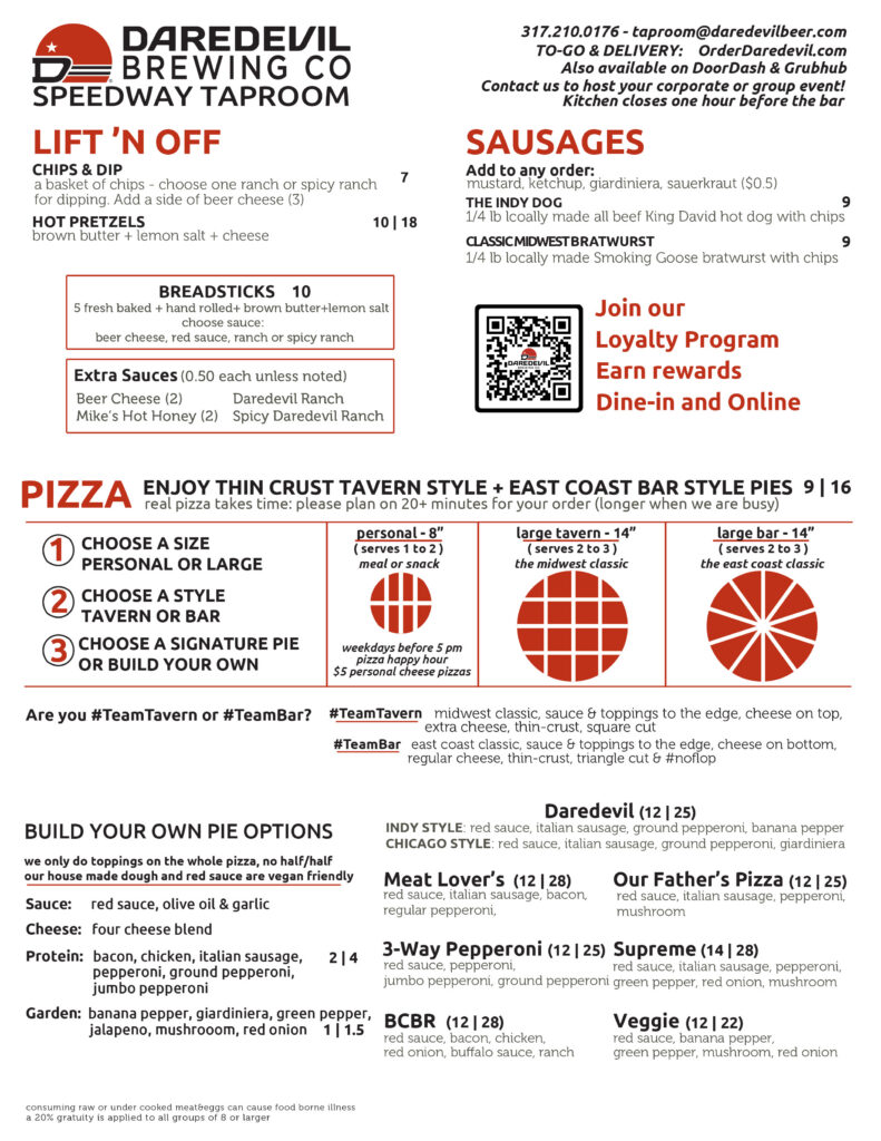 Place to-go orders for the Speedway Taproom at OrderDaredevil.com